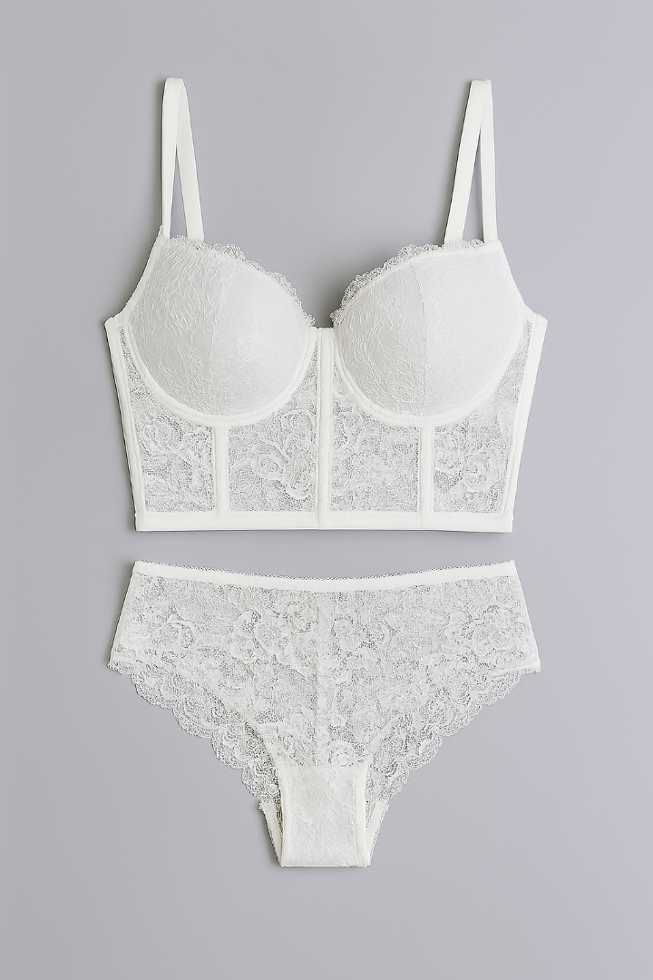 ست شورت سوتین پایه بلند گیپور دار