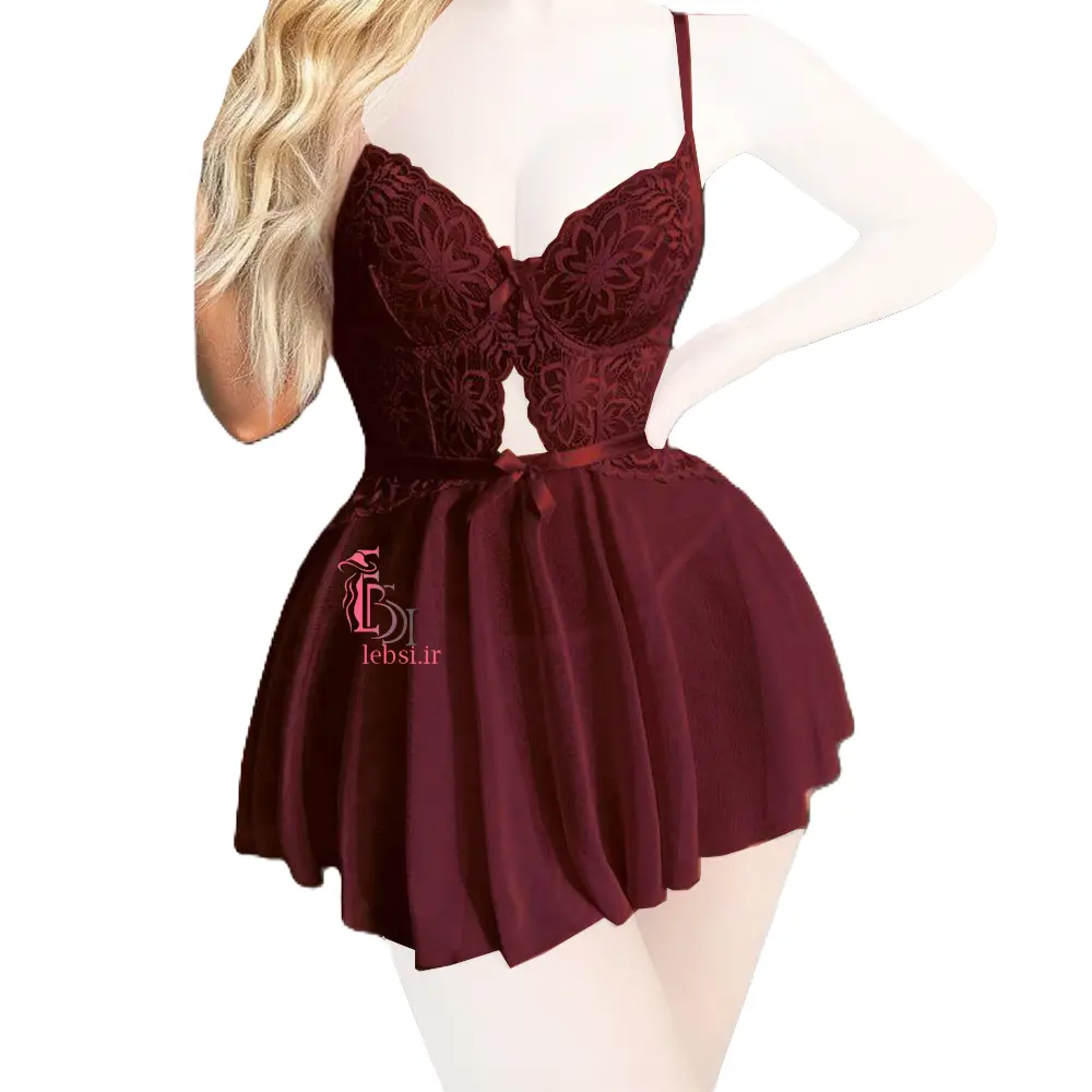 لباس خواب در دو حالت بادی گیپور پشت ضبدری و دامن بلند