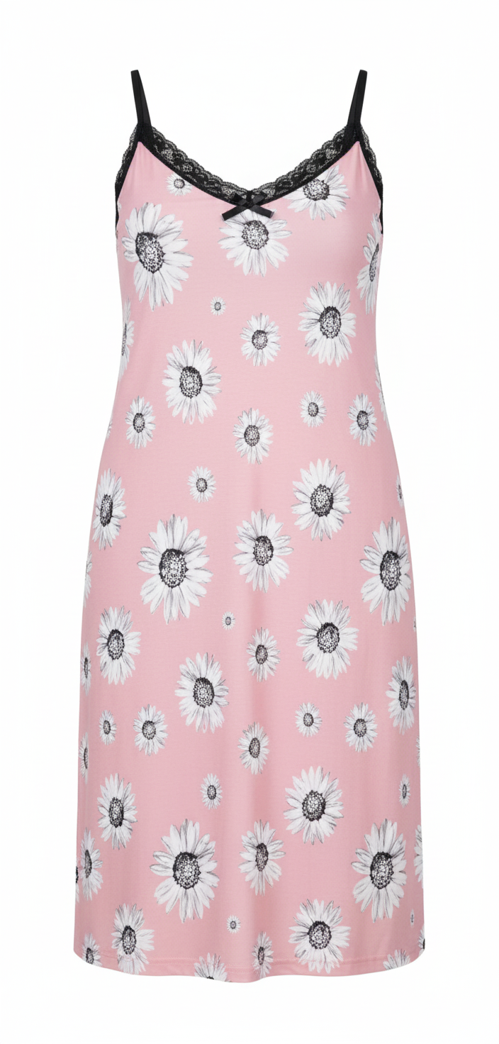 پیراهن نخی بندی گلدار طرح افتابگردان رتگ مشکی و صورتی