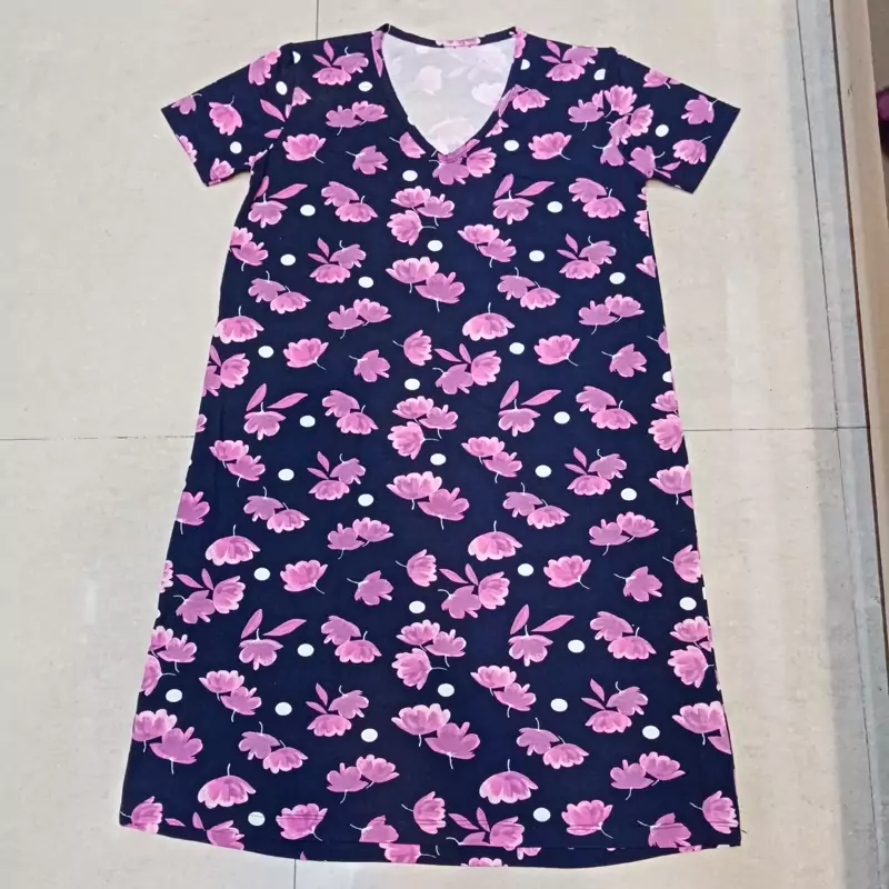 پیراهن نخی استین کوتاه تا بالا زانو